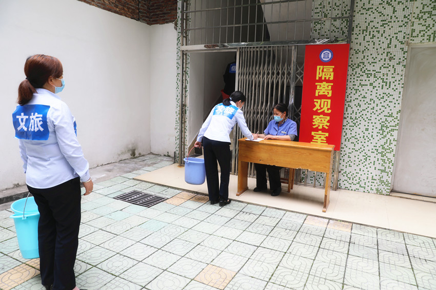 信息联络小组随即通知各小组,身穿防护服的医疗保障小组人员迅速到达,带该学生绕开人群,到临时隔离室内。
