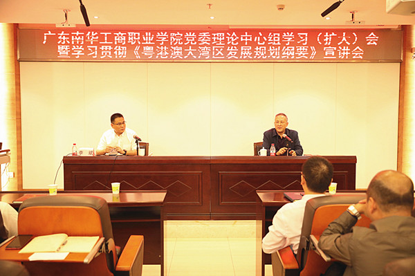 4月4日下午,我校党委理论中心组(扩大)学习暨学习贯彻《粤港澳大湾区发展规划纲要》宣讲会在天河校区培训楼101课室举行,省委宣讲团成员、省委宣传部讲师团团长李斌应邀到我校作宣讲报告。党委副书记、副校长郭记中主持会议。