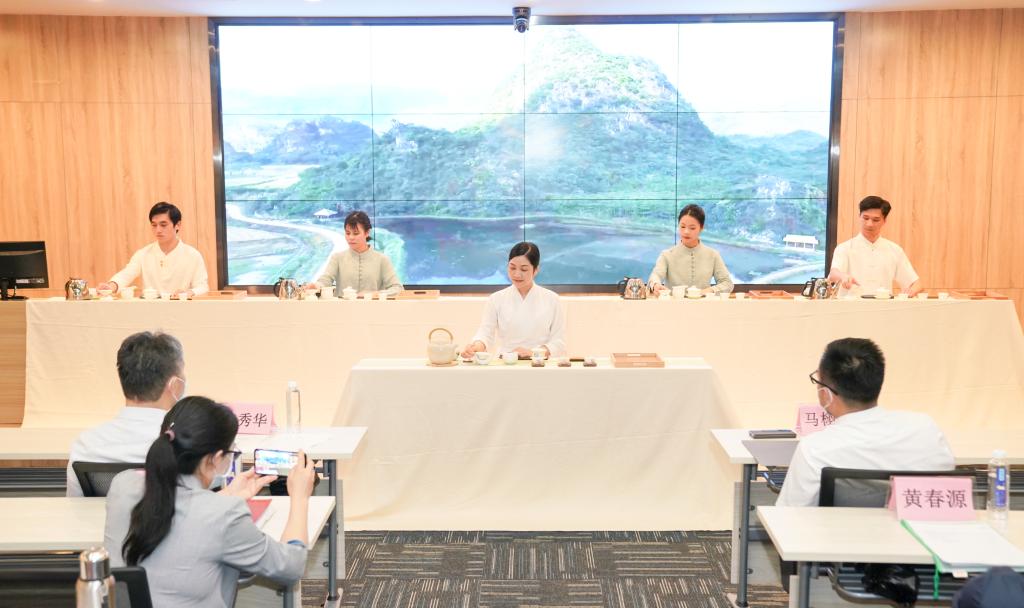 (劳模张扬娣带领学生进行茶艺表演)